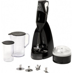 Mixeur plongeant - MultiQuick 7 - Ce mixeur est équipé de lames mobiles qui montent et descendent dans la base pour une zone de coupe 2.5 fois plus grande - Système PowerBell Plus : pour augmenter la zone de coupe et réduire l'effort sur les préparations les plus dures - Variateur électronique de vitesse : plus vous appuyez sur le bouton, plus la vitesse de rotation est élevée - Technologie Splash Control pour diminuer les éclaboussures et garder une cuisine propre en toutes circonstances - Pied inox anti-éclaboussures amovible - Hachoir de 350 ml pour hacher facilement herbes, viande, fromages durs, noix... en quelques secondes - Fouet inox pour réaliser mayonnaise, crème chantilly... - Gobelet 600 ml - Moteur ultra-puissant et silencieux - Coloris Noir - Puissance 1000 W - Garantie 2 ans.