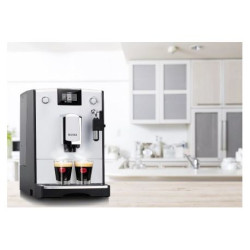 Expresso broyeur entièrement automatique séries 1200 - Savourez des boissons en toute simplicité (2 boissons) - Que vous ayez envie d'un expresso, d'un café classique ou d'eau chaude, votre machine toute automatique vous prépare une tasse parfaite, en toute simplicité et en un rien de temps - Personnalisez facilement chaque boisson en réglant l'intensité (3 niveaux), la température et le volume de votre boisson grâce au Menu My Coffee Choice - Broyeur 100% céramique pour une mouture uniforme sans surchauffer le café, pour un expresso impeccable - La céramique garantit en outre une durée de vie prolongée et un fonctionnement totalement silencieux - Cette machine offre 12 niveaux différents de mouture, de la plus fine pour un expresso intense à la plus grosse, pour un café crème léger - Option Café moulu pour vous permettre notamment de préparer un café décaféiné quand vous le souhaitez - Le mousseur à lait classique, également appelé Pannarello par les baristas vous permet de préparer une onctueuse mousse de lait pour votre cappuccino - Écran tactile intuitif - Groupe café amovible pour un nettoyage parfait - Programme de détartrage avec rappel de détartrage automatique - Filtre à eau AquaClean (non incluse) pour réaliser 5000 tasses sans détartrage - Capacité bac à grains 275 g - Capacité du tiroir à marcs 12 marcs - Capacité du réservoir d'eau amovible 1,8 L - Coloris Gris Cachemire- 15 bars - Puissance 1500 W - Garantie 2 ans.