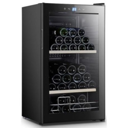 La cave à vin LS52BLACK La Sommelière est peu encombrante, elle sait vous rendre de grands services pour déguster et faire déguster vos vins à température idéale. Elle a une capacité de 52 bouteilles. Elle est équipée de quatre clayettes en bois vous permettant de stocker vos bouteilles de vin de manière élémentaire et pratique. De plus, cette cave à vin protège vos bouteilles avec sa porte en verre trempée, traitée anti-UV. Cette cave sublime vos vins grâce à un éclairage intérieur LED. Avec son faible niveau sonore de seulement 37 décibels, elle s'intègre en toute discrétion dans vos pièces de vie. Avec cette cave à vin, un bref coup d'œil sur l'affichage digital vous permet de voir la température au degré près.