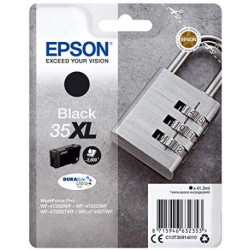 Epson Padlock Singlepack Black 35XL DURABrite Ultra Ink. Type: Original, Type d'encre: Encre à pigments, Couleurs d'impression: Noir. Largeur du ...