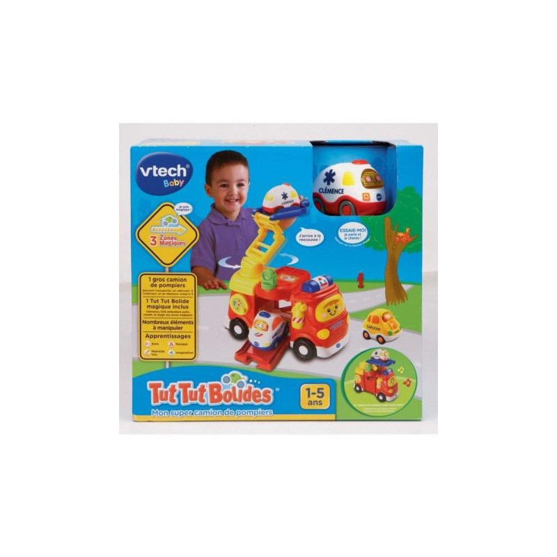 - Une grande échelle orientable et dépliable, un bouton avertisseur sonore, un gyrophare, un extincteur à actionner et une manivelle lance d’incendie à tourner