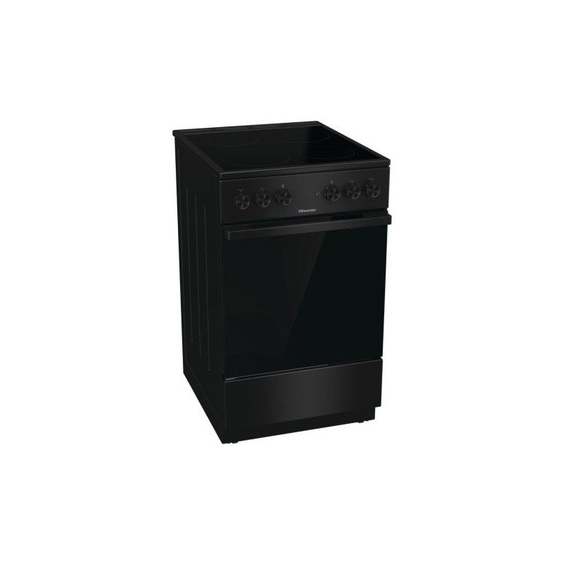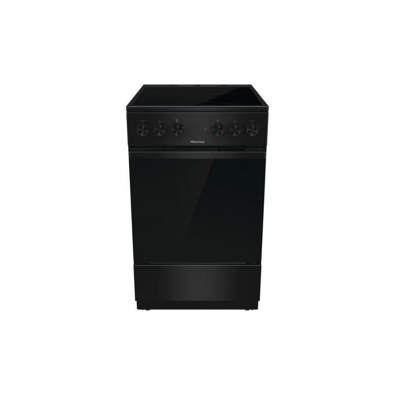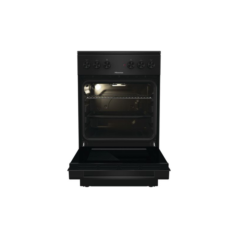 Hisense HEC5A10BG. Type de produit: Cuisinière, Couleur du produit: Noir, Type de commande: Rotatif. Type de plaque: Céramique, Nombre de brûleurs: 4 zone(s), Type de surface extérieure (dessus): Verre-céramique. Taille du four: Moyenne, Source d'alimentation du four: Electrique, Capacité nette du four: 68 L. Classe d'efficacité énergétique: A, Consommation d'énergie (conventionnelle): 0,8 kWh, Puissance raccordée (électrique): 8000 W. Largeur: 500 mm, Profondeur: 594 mm, Hauteur: 850 mm