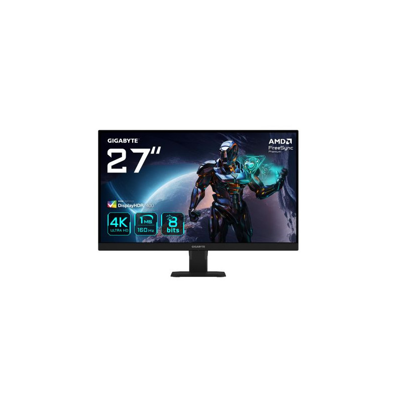 GIGABYTE GS27U 27" Moniteur de jeu UHD - 3840 x 2160, 160Hz, 1ms, 350 cd/m², Display HDR400, HDMI 2.1, DisplayPort 1.4. Taille de l'écran: 68,6 cm (27"), Résolution de l'écran: 3840 x 2160 pixels, Type HD: 4K Ultra HD, Technologie d'affichage: LED, Surface d'affichage: Mat, Temps de réponse: 1 ms, Format d'image: 16:9, Angle de vision horizontal: 178°, Angle de vision vertical: 178°. Montage VESA. Couleur du produit: Noir