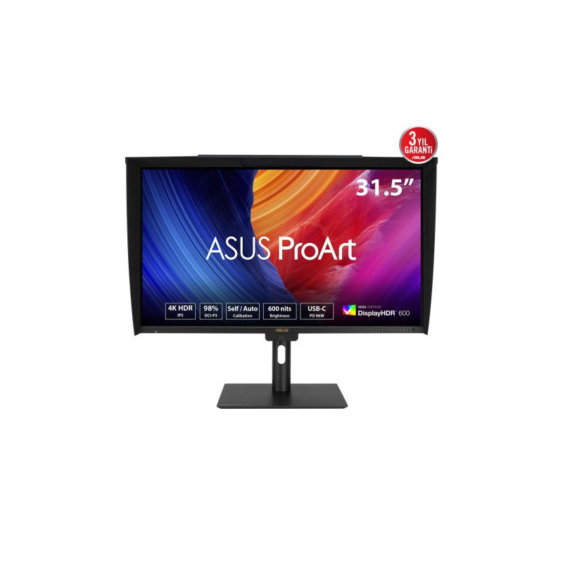 ASUS ProArt PA32UCE. Taille de l'écran: 80 cm (31.5"), Résolution de l'écran: 3840 x 2160 pixels, Type HD: 4K Ultra HD, Technologie d'affichage: LED, Temps de réponse: 5 ms, Format d'image: 16:9, Angle de vision horizontal: 178°, Angle de vision vertical: 178°. Haut-parleurs intégrés. Concentrateur USB intégré, Version du concentrateur USB: 3.2 Gen 1 (3.1 Gen 1). Montage VESA, Réglage de la hauteur. Couleur du produit: Noir