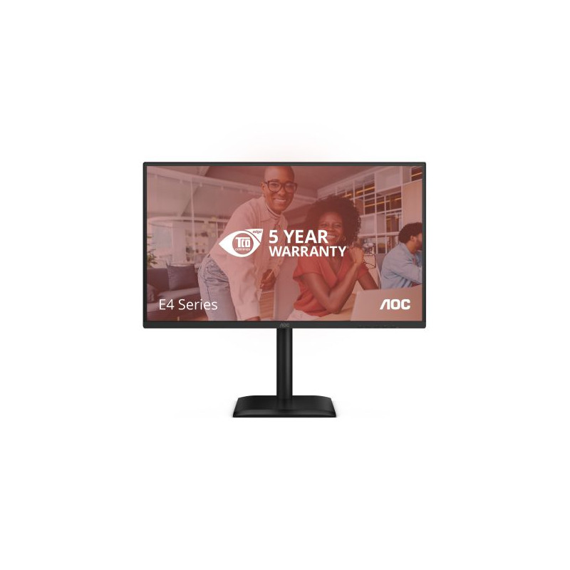 AOC E4 Q27E4CV. Taille de l'écran: 68,6 cm (27"), Résolution de l'écran: 2560 x 1440 pixels, Type HD: Quad HD, Technologie d'affichage: LED, Temps de réponse: 4 ms, Format d'image: 16:9, Angle de vision horizontal: 178°, Angle de vision vertical: 178°. Haut-parleurs intégrés. Concentrateur USB intégré, Version du concentrateur USB: 2.0 / 3.2 Gen 1 (3.1 Gen 1). Montage VESA, Réglage de la hauteur. Couleur du produit: Noir