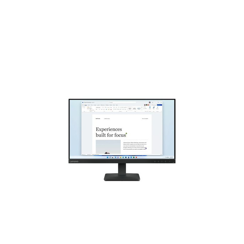 Lenovo L24-4e. Taille de l'écran: 60,5 cm (23.8"), Résolution de l'écran: 1920 x 1080 pixels, Type HD: Full HD, Technologie d'affichage: LCD, Temps de réponse: 6 ms, Format d'image: 16:9, Angle de vision horizontal: 178°, Angle de vision vertical: 178°. Montage VESA. Couleur du produit: Noir