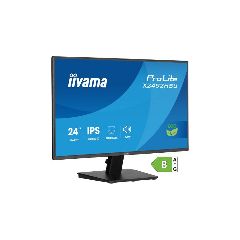 iiyama ProLite X2492HSU-B1. Taille de l'écran: 61 cm (24"), Résolution de l'écran: 1920 x 1080 pixels, Type HD: Full HD, Technologie d'affichage: LED, Surface d'affichage: Mat, Temps de réponse: 3 ms, Format d'image: 16:9, Angle de vision horizontal: 178°, Angle de vision vertical: 178°. Haut-parleurs intégrés. Concentrateur USB intégré, Version du concentrateur USB: 3.2 Gen 1 (3.1 Gen 1). Montage VESA. Couleur du produit: Noir