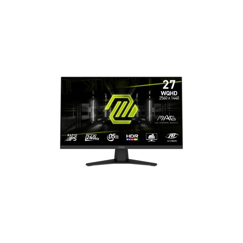 MSI MAG 274QFDE X24. Taille de l'écran: 68,6 cm (27"), Résolution de l'écran: 2560 x 1440 pixels, Type HD: Wide Quad HD, Technologie d'affichage: LCD, Temps de réponse: 0,5 ms, Format d'image: 16:9, Angle de vision horizontal: 178°, Angle de vision vertical: 178°. Montage VESA. Couleur du produit: Noir