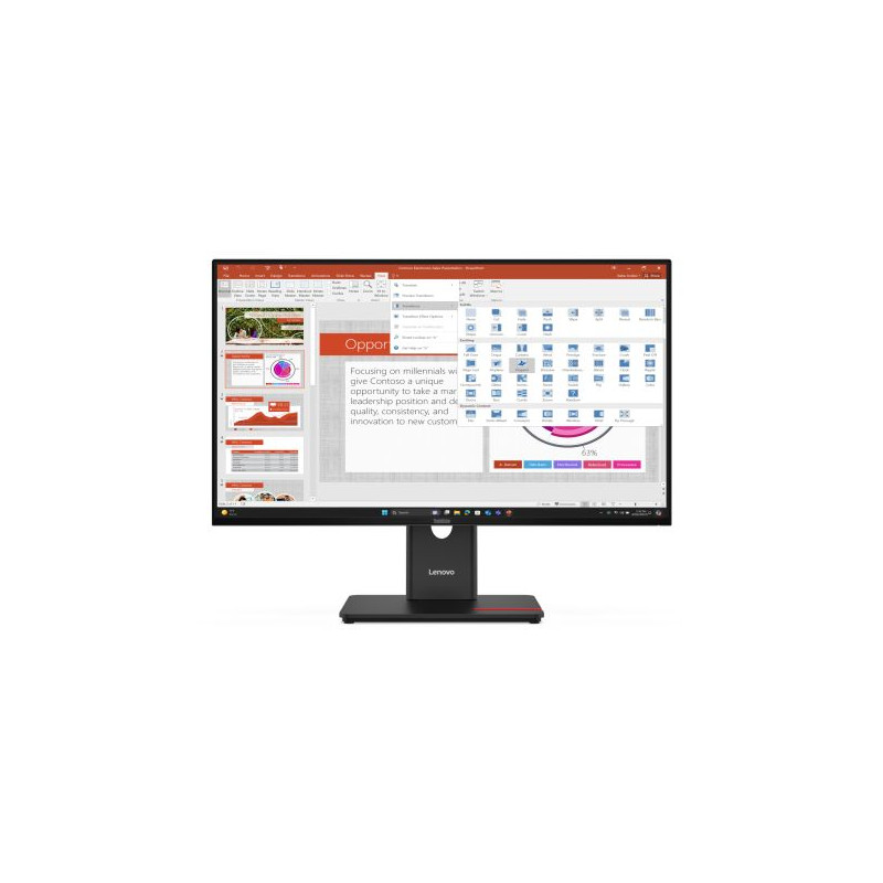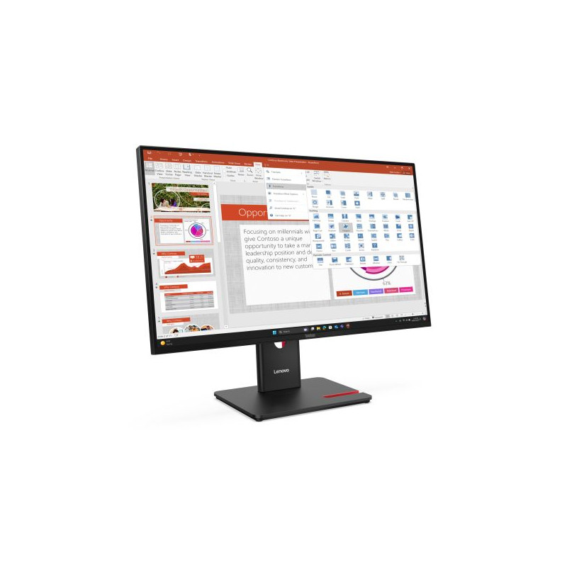 Lenovo ThinkVision T27-40 Moniteur. Taille de l'écran: 68,6 cm (27"), Résolution de l'écran: 1920 x 1080 pixels, Type HD: Full HD, Technologie d'affichage: LED, Temps de réponse: 6 ms, Format d'image: 16:9, Angle de vision horizontal: 178°, Angle de vision vertical: 178°. Concentrateur USB intégré, Version du concentrateur USB: 3.2 Gen 1 (3.1 Gen 1). Montage VESA, Réglage de la hauteur. Couleur du produit: Noir