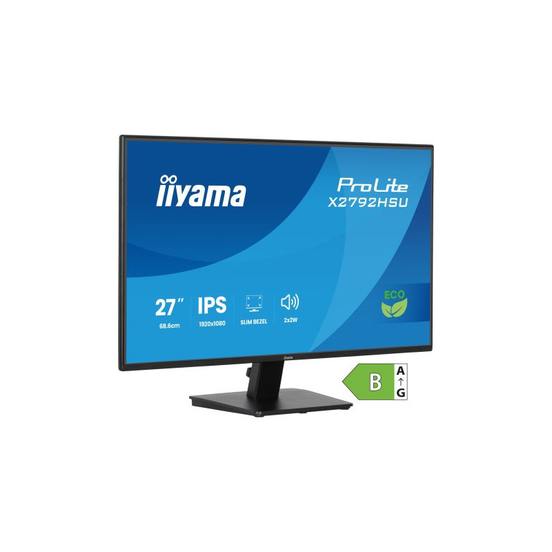 iiyama ProLite X2792HSU-B1. Taille de l'écran: 68,6 cm (27"), Résolution de l'écran: 1920 x 1080 pixels, Type HD: Full HD, Technologie d'affichage: LED, Surface d'affichage: Mat, Temps de réponse: 3 ms, Format d'image: 16:9, Angle de vision horizontal: 178°, Angle de vision vertical: 178°. Haut-parleurs intégrés. Concentrateur USB intégré, Version du concentrateur USB: 3.2 Gen 1 (3.1 Gen 1). Montage VESA. Couleur du produit: Noir