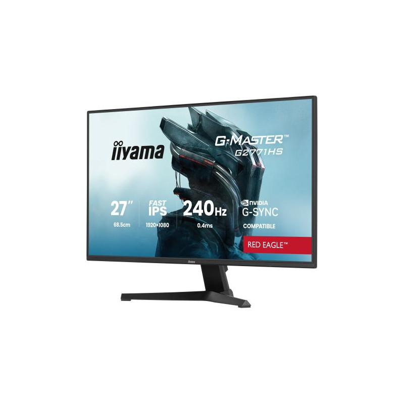 iiyama G-MASTER G2771HS-B1. Taille de l'écran: 68,6 cm (27"), Résolution de l'écran: 1920 x 1080 pixels, Type HD: 4K Ultra HD, Temps de réponse: 0,4 ms, Format d'image: 16:9, Angle de vision horizontal: 178°, Angle de vision vertical: 178°. Haut-parleurs intégrés. Montage VESA. Couleur du produit: Noir