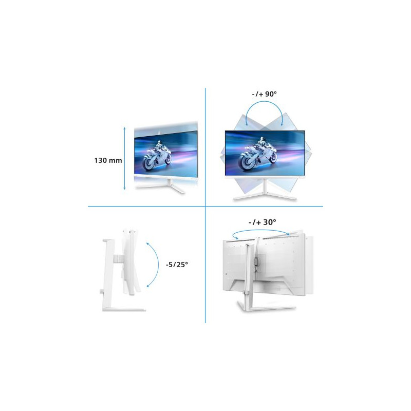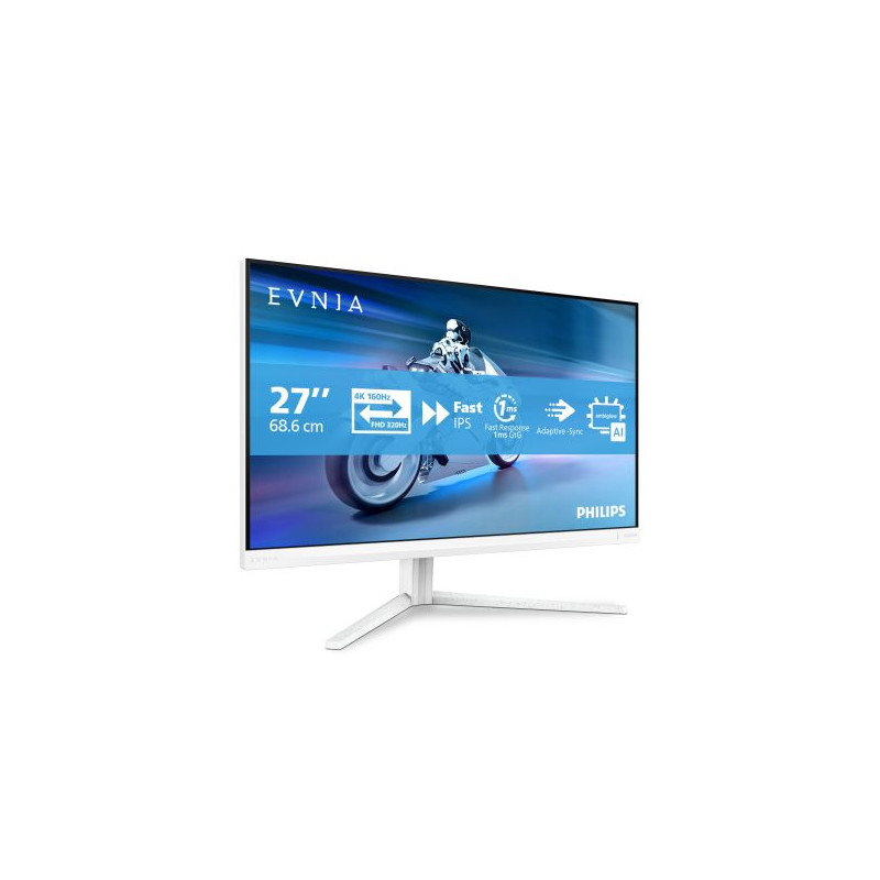 Philips Evnia 5000. Taille de l'écran: 68,6 cm (27"), Résolution de l'écran: 3840 x 2160 pixels, Type HD: 4K Ultra HD, Technologie d'affichage: LCD, Temps de réponse: 1 ms, Format d'image: 16:9, Angle de vision horizontal: 178°, Angle de vision vertical: 178°. Haut-parleurs intégrés. Concentrateur USB intégré, Version du concentrateur USB: 3.2 Gen 1 (3.1 Gen 1). Montage VESA, Réglage de la hauteur. Couleur du produit: Blanc