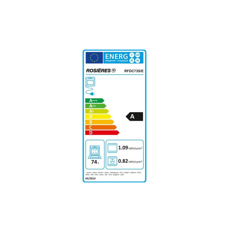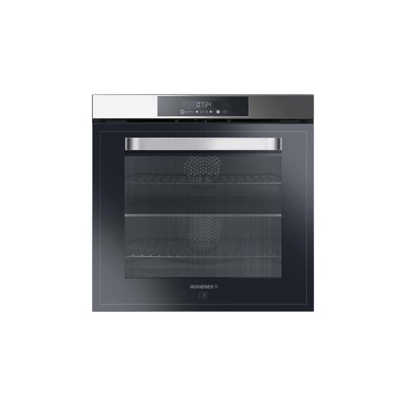 Four pyrolyse Rosières RFDC73S/E Origine Inox - Ce four encastrable séduit par son design élégant et son efficacité redoutable - Doté d’un bandeau de commande Full Touch 100 % tactile, il permet une utilisation simple et intuitive pour un confort d’usage au quotidien - Avec sa double cavité et ses deux turbines, vous pouvez cuire simultanément deux plats différents sans mélange d’odeurs, avec un écart de température pouvant aller jusqu’à 80°C - Il propose 7 fonctions de cuisson, dont la chaleur pulsée et la convection naturelle, pour des résultats homogènes et rapides - La pyrolyse détruit automatiquement graisses et sucres à plus de 400°C pour un nettoyage sans effort - Ce modèle offre un équipement complet avec éclairage halogène, porte froide 4 vitres, gradins anti-basculement et ventilation de refroidissement - Il est livré avec deux grilles et une lèchefrite - Électronique, précis et économe, il bénéficie d’une classe énergétique A, idéale pour une consommation maîtrisée - Le Rosières RFDC73S/E allie technologie et praticité pour cuisiner comme un chef à la maison.