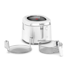Friteuse Moulinex Filtra Vision AF2541E0 - Conçue pour allier praticité et gourmandise, elle offre des frites croustillantes à l’extérieur et tendres à l’intérieur grâce à sa technologie Grandview, un large hublot antibuée qui permet de surveiller la cuisson en toute simplicité - Sa grande capacité de 1,2 kg (jusqu’à 4 personnes) et son bac d’huile de 2,1 L en font un format idéal pour les repas familiaux - Son filtre métallique amovible garde l’huile plus propre plus longtemps, garantissant des préparations savoureuses et économiques - Facile à ranger grâce à sa poignée pliable et son format compact, elle dispose aussi d’un revêtement anti-adhésif et de pièces amovibles compatibles lave-vaisselle (panier, couvercle, filtre, collecteur d’eau) pour un entretien simplifié - Son panneau de commande clair avec thermostat, bouton marche/arrêt et ouverture automatique du couvercle assure un usage intuitif - Avec son engagement réparabilité 15 ans, c’est une friteuse fiable, durable et pensée pour un usage quotidien.