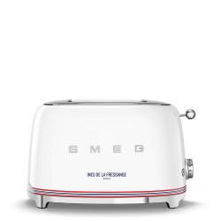Toaster SMEG TSF01IDFEU - Avec son design iconique Années 50 et sa finition blanc brillant, ce toaster 2 fentes apporte une touche de style à votre cuisine - Sa puissance de 950 W et ses 6 niveaux de brunissement permettent de personnaliser parfaitement la cuisson de chaque tranche selon vos envies - Les larges fentes de 36 mm avec centrage automatique s’adaptent aussi bien aux tranches fines qu’aux pains plus épais - Grâce à ses fonctions pratiques réchauffage, décongélation et bagel, il s’adapte à toutes vos habitudes du petit-déjeuner - L’éjection automatique en fin de cycle facilite l’utilisation au quotidien et le tiroir ramasse-miettes amovible assure un nettoyage rapide et pratique - Compact et stable avec sa base antidérapante, il combine efficacité, sécurité et élégance.