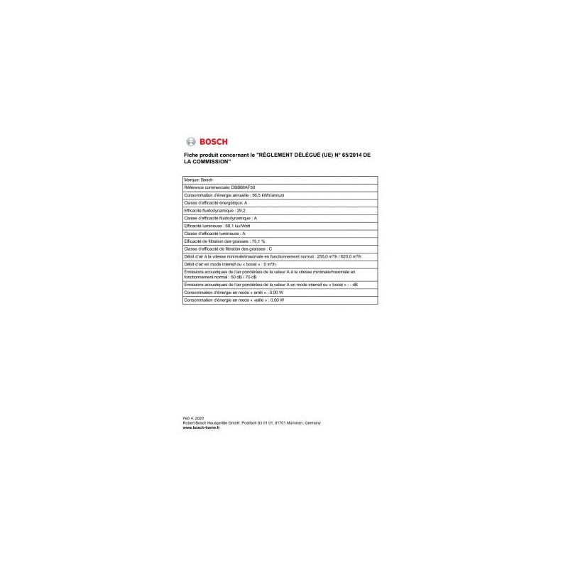 Siemens LC87JFN60. Puissance d'extraction maximum: 427 m³/h, Type d'extraction: Conduit / Recirculation, Classe d'efficacité dynamique du fluide: ...