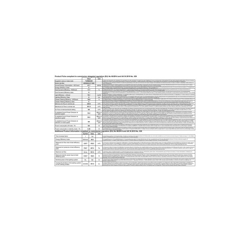 Leisure H92K. Puissance d'extraction maximum: 590 m³/h, Type d'extraction: Conduit / Recirculation, Classe d'efficacité dynamique du fluide: D. ...
