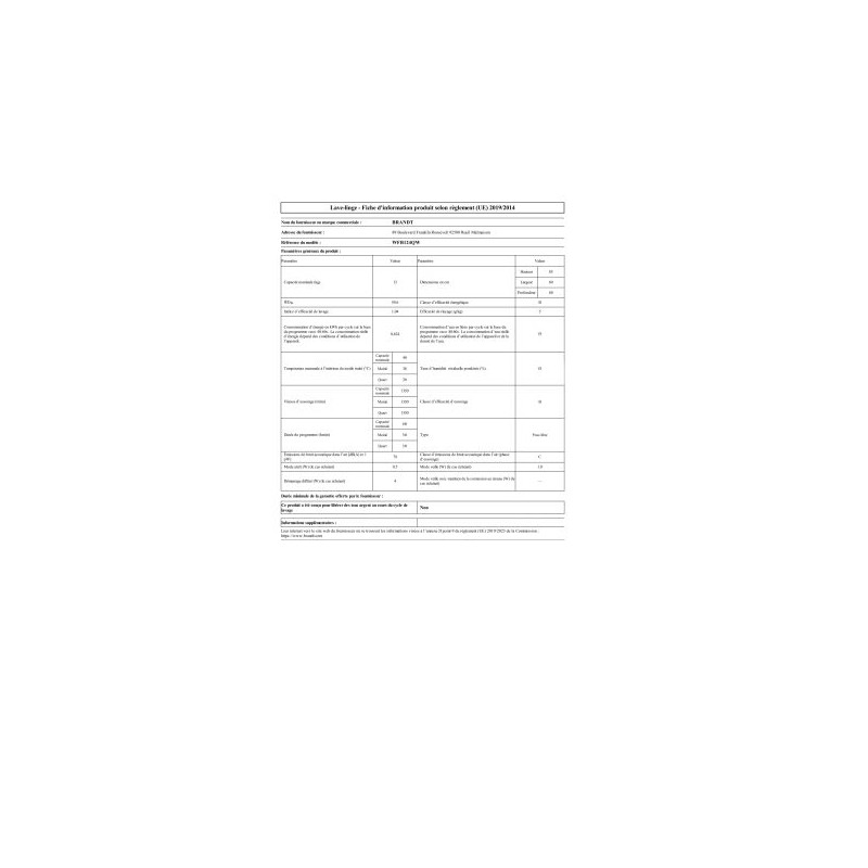 Lave-linge 8 kilos Essorage 1400 tours/minute Classe énergétique A Niveau sonore 76 15 programmes Ecran Led 3 fonctions de sécurité Dimensions ...