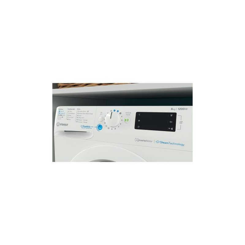 8 kg, 1200 trs, Classe A-10%, BIG DIGIT Moteur induction Push & Go 30% de temps de repassage en moins en UNE SEULE pression ! Appuyez sur le bouton PUSH&GO Steam, activez un cycle de lavage quotidien de moins d’1 heure avec le pouvoir de la vapeur.* Dans les 15 dernières minutes du cycle, de la vapeur est injectée dans le tambour pour assouplir les tissus avant le repassage. Programmes Vapeur Le lavage et le repassage n'ont jamais été aussi faciles. Avec les cycles Coton et Chemises, profitez d'un linge parfaitement propre et facile à repasser. La technologie vapeur associe l'action de la vapeur en fin de cycle pour détendre les fibres du vêtement et ainsi faciliter le repassage. Extra rapide Tellement rapide que même les plus pressés trouveront le temps de laver leur linge en un clin d'œil ! Profitez de 2 programmes rapides, l'un en seulement 20 minutes pour une petite charge et l'autre en seulement 45 minutes pour une charge pleine. Cycle Auto-Clean Le cycle d’auto-nettoyage dure 70min et chauffe à 85° pour désencrasser les parties internes de la machine, comme le bac à lessive et le tambour, sans utilisation de produits détergents. Il élimine les résidus de lessive, la saleté et les bactéries qui peuvent causer la formation de mauvaises odeurs