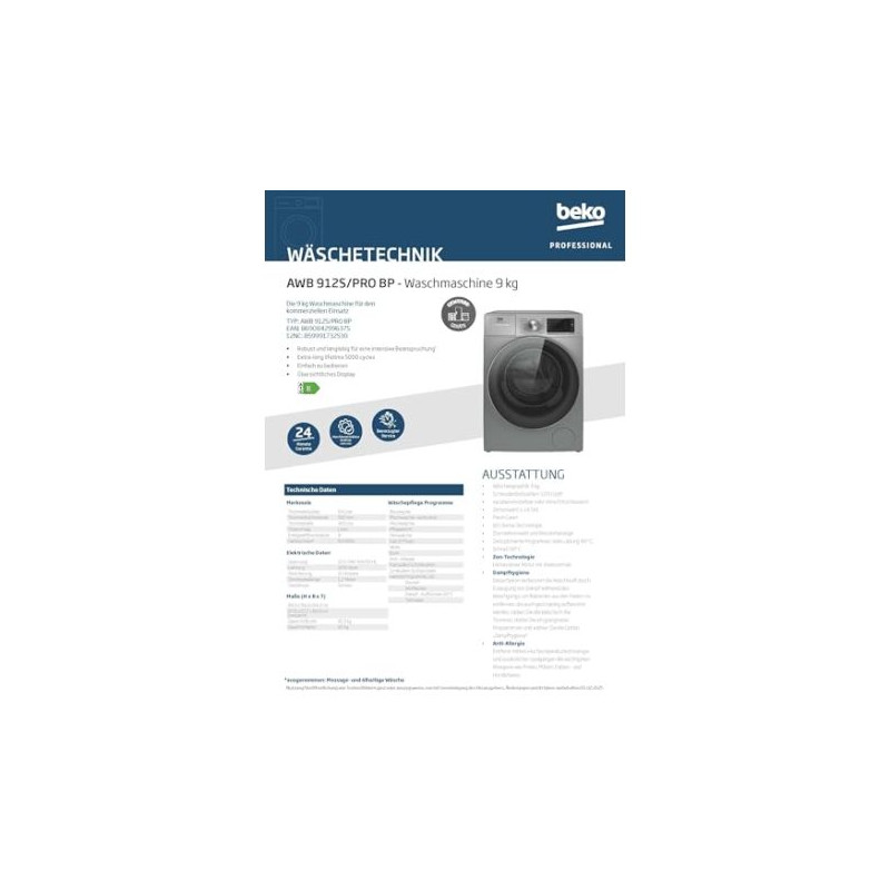 AWB912 S/PRO BP - Lave-linge à usage intensif Silver Line 9 kg
