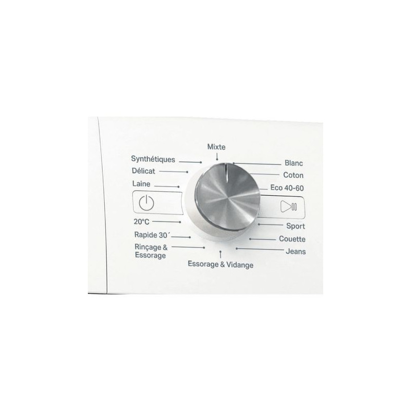 Coton, Cottons 20°C, délicat/soie, Eco 40-60°C, Mix, Rincer et essorer, Filage/drainage, Sport, Synthétiques, Blanc