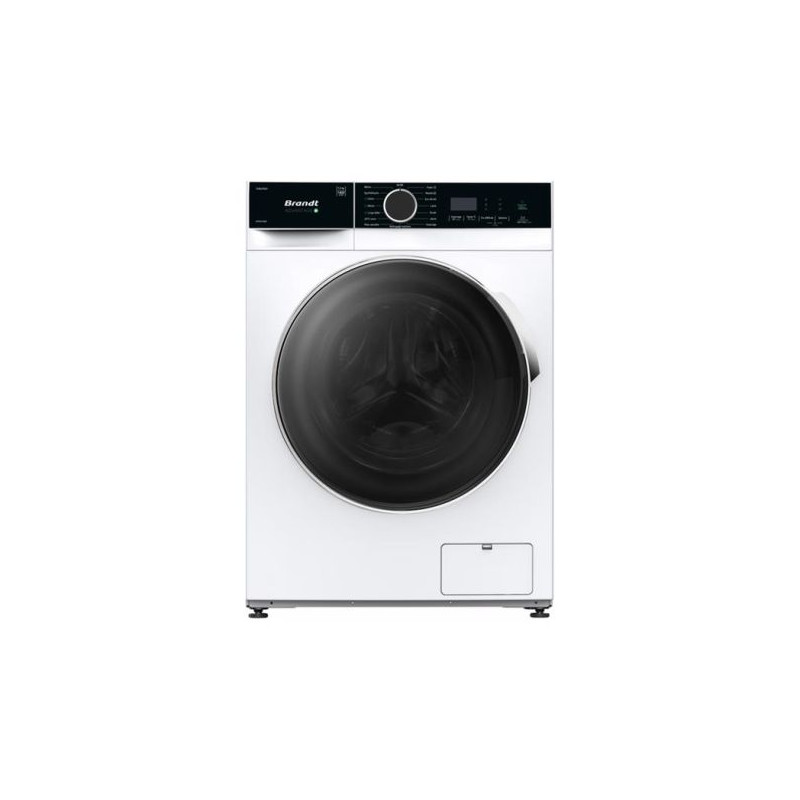 Lave-linge frontal Brandt WFB524QW - Avec sa capacité exceptionnelle de 12 kg et sa vitesse d’essorage de 1400 tours/min, ce modèle est conçu pour les grandes familles ou les pièces volumineuses comme les couettes - Il propose 15 programmes complets : coton, synthétiques, linge bébé, laine, mixte, peaux sensibles, doudoune ou encore un cycle Rapide 59 min pour laver en moins d’une heure une charge quotidienne - Ce modèle dispose d’options comme le prélavage, l’ajout de linge, le rinçage+, la gestion du degré de salissure, la vapeur et la fin différée (jusqu’à 24h) - Grâce à l’option hygiène vapeur, les bactéries sont éliminées sans compromettre la douceur des textiles, idéale sur les programmes coton, mixte et linge bébé - Il intègre un moteur induction, synonyme de durabilité et de silence - Son tambour en inox de 76 L et son large hublot de 33 cm facilitent le chargement - Ce lave-linge offre une classe énergétique A avec une consommation maîtrisée de 54 kWh/100 cycles - L’interface digits blanc permet de suivre le temps restant facilement - Sécurités intégrées : anti-débordement, anti-balourd, sécurité enfants.