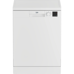 Beko DVN06430W. Placement de l'appareil: Pose libre, Taille du produit: Taille maximum (60 cm), Couleur de la porte: Blanc. Nombre de couverts: 14 couverts, Classe d'émission sonore: C, Niveau sonore: 47 dB. Classe d'efficacité énergétique: D, Consommation d'eau par cycle: 11,5 L, Consommation d'énergie pour 100 cycles: 85 kWh. Largeur: 598 mm, Profondeur: 600 mm, Hauteur: 850 mm. Largeur du colis: 644 mm, Profondeur du colis: 661 mm, Hauteur du colis: 889 mm