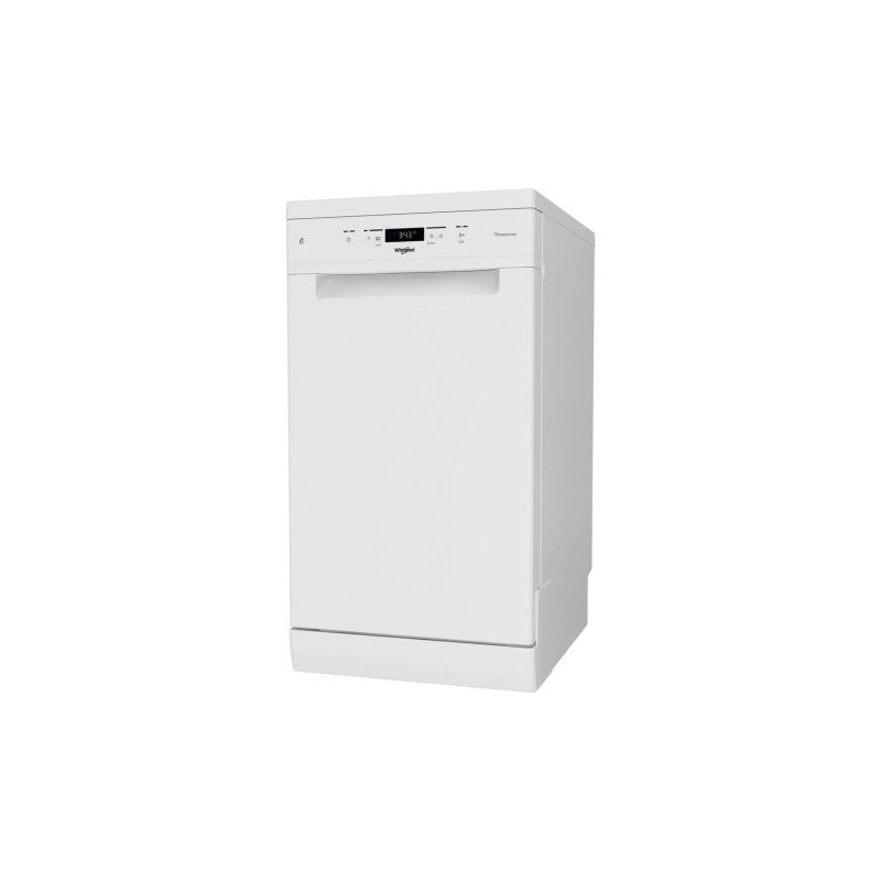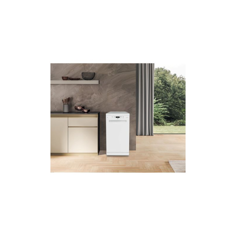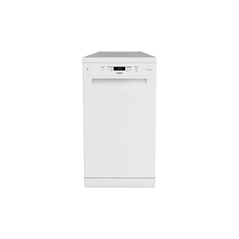 Whirlpool WH6FC11BS7A0W. Placement de l'appareil: Pose libre, Taille du produit: Compact (45 cm), Couleur de la porte: Blanc. Nombre de couverts: 11 couverts, Classe d'émission sonore: B, Niveau sonore: 41 dB. Classe d'efficacité énergétique: C, Consommation d'eau par cycle: 8,7 L, Consommation d'énergie pour 100 cycles: 63 kWh. Largeur: 450 mm, Profondeur: 590 mm, Hauteur: 850 mm. Poids du paquet: 41,5 kg