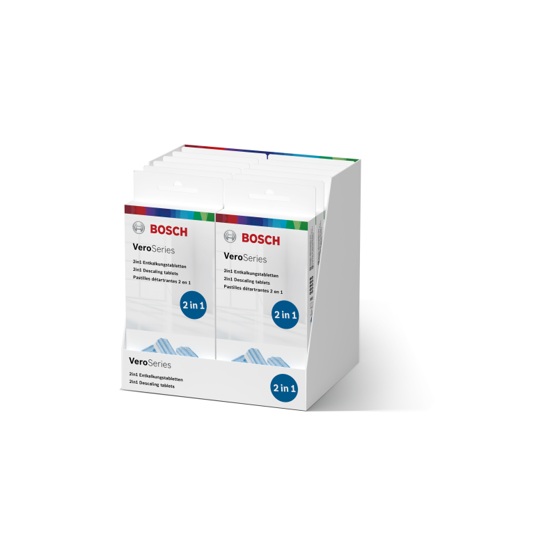 Une durée de vie prolongée, grâce à une protection optimale contre le calcaire 2 en 1 : détartrant et nettoyant. Optimisé pour le processus de détartrage automatique des broyeur expresso EQ900+ Testé et approuvé pour nos machines à café grain tout automatique Convient à toutes les machines expresso tout automatiques Bosch Contenu : 3 tablettes de détartrage