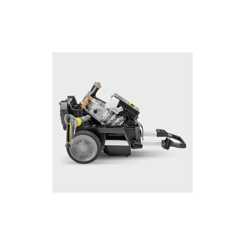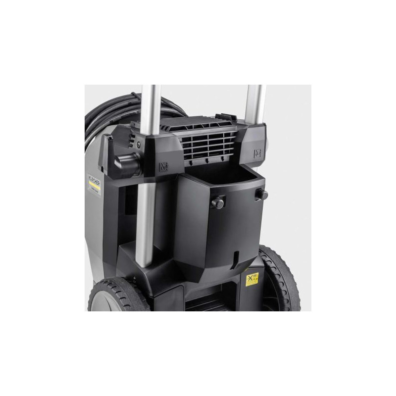 Le nettoyeur haute pression à eau froide HD 10/25-4 S Plus se démarque par sa puissance élevée et sa qualité. Grâce aux systèmes d'assistance et sa rotabuse Vibrasoft, il est optimal pour un travail ergonomique. Le nettoyeur haute pression à eau froide HD 10/25-4 S Plus est idéal pour un travail ergonomique et convivial. À l'aide de la poignée-pistolet Kärcher EASY!Force Advanced, il s'utilise confortablement sans effort de maintien. La pression et la quantité d'eau peuvent être ajustées via le réglage Servo Control entre la lance et la poignée-pistolet. La réduction de la pression permet une réaction rapide en cas de supports délicats, sans avoir à changer de buse. De plus, la nouvelle rotabuse Vibrasoft réduit considérablement les vibrations au niveau de la lance haute pression. Des systèmes d'assistance et une indication de l'état à LED facilitent l'utilisation. Des matériaux de choix garantissent une qualité supérieure à l'intérieur de l'appareil de la gamme Super. Une pompe à plateau oscillant robuste, dotée de pistons en acier inoxydable avec un revêtement céramique et d'une culasse en laiton, fonctionne en association avec un moteur à 4 pôles, à faible vitesse, refroidi à l'eau et à l'air. Des montants de châssis en aluminium intégrés forment un châssis léger et robuste avec possibilité de chargement par grue. Pour un design compact et mobile, le groupe moteur et pompe sont installés à la verticale. Le nettoyeur est complété par d'autres possibilités de rangement pour les accessoires sous forme d'une poche kangourou et de crochets réglables.