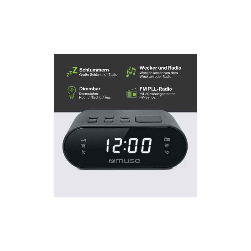 Muse M-10 CR. Radio: Internet, Type de tuner: Analogique, Type de bandes supportées: FM. Type d'écran: LED, Taille de l'écran: 1,52 cm (0.6"), ...