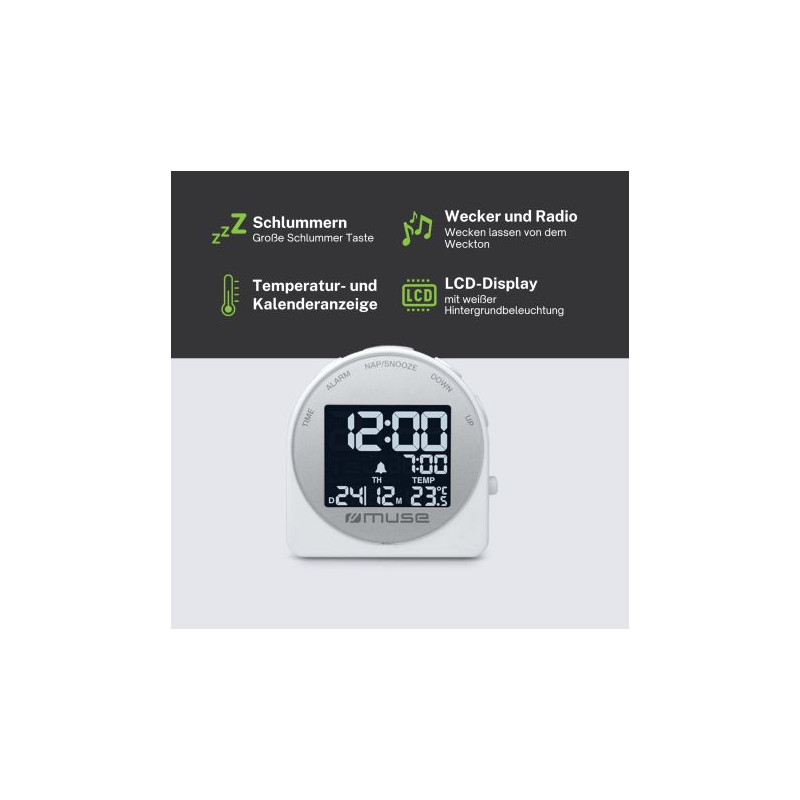 Radio-réveil FM - Transformez vos matins avec le Radio Réveil Muse M-179 P - Avec son grand afficheur LED blanc de 0,9 pouces, vous pouvez ...