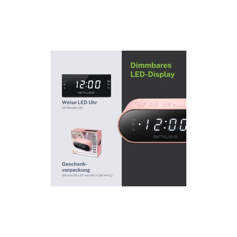 Réveil pour enfants Muse M-16 KIDS avec lumière et sons apaisants - Doté d’un afficheur LED blanc de 0,5 pouce, il offre une lecture claire de ...