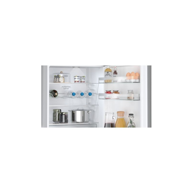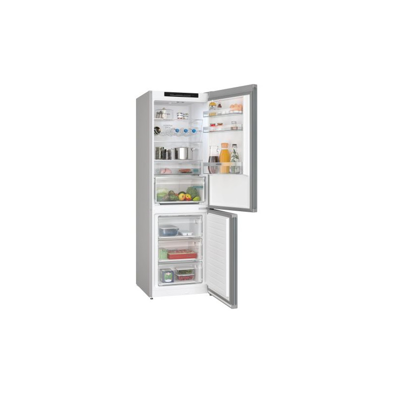 Siemens iQ300 KG36N2LCF. Capacité nette totale: 321 L. Emplacement charnière de porte: Droite. Classe climatique: SN-T, Niveau sonore: 35 dB. Capacité nette du réfrigérateur: 218 L, No Frost (réfrigérateur), Système à plusieurs flux d'air (réfrigérateur), Lumière intérieure du réfrigérateur. Capacité net du congélateur: 103 L, Capacité de congélation: 9,5 kg/24h, No Frost (freezer). Nouvelle zone compartiment. Classe d'efficacité énergétique: C, Consommation annuelle d'énergie: 159 kWh. Couleur du produit: Acier inoxydable