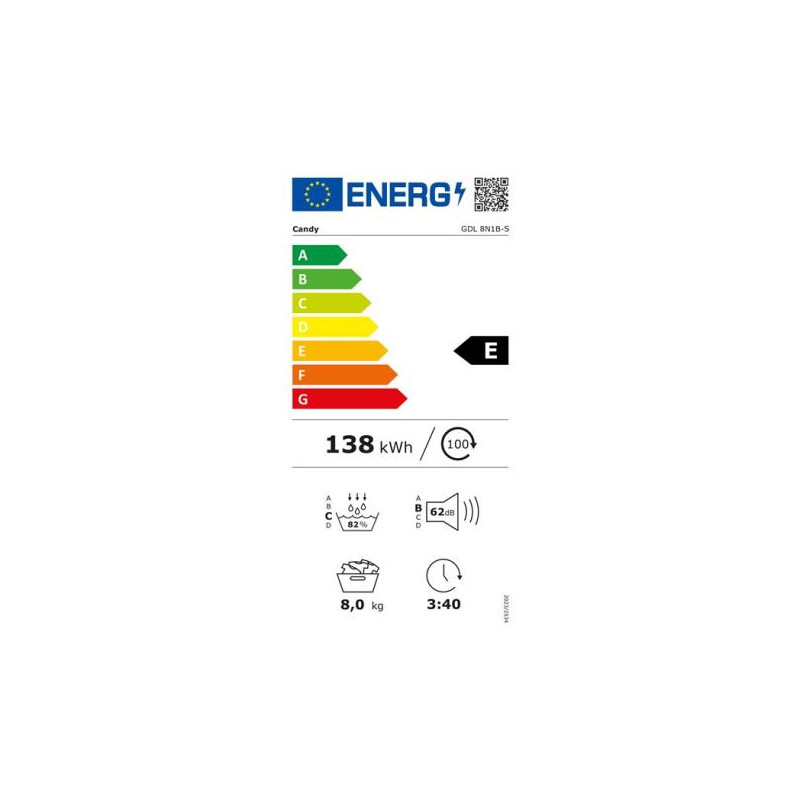 Beko D3H18301W. Placement de l'appareil: Pose libre, Type de chargement: Charge avant, Système de séchage: Pompe à chaleur. Capacité nominale: 8 ...