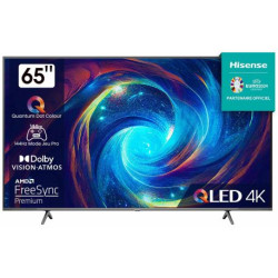 La résolution 4K est idéale pour profiter de vos divertissements préférés. Si la vidéo originale est disponible dans une plus faible résolution comme en 2K FHD, le téléviseur peut automatiquement optimiser l’image et s’approcher de la 4K grâce à l’intelligence artificielle.L'expérience audio la plus réaliste et immersive.DTS Virtual X est la solution de post-traitement audio haut de gamme pour téléviseurs qui sublime l'expérience de vos divertissements. Grâce à son expertise en son surround virtuel, la solution DTS Virtual X délivre un son ultra-réaliste et transforme vos contenus en une expérience immersive.Plus d'un milliard de nuances de couleursAvec la technologie Quantum Dots, les modèles QLED possèdent un spectre colorimétrique plus large (64x plus de couleurs) que sur un téléviseur LED classique. Profitez donc, d'images plus réaliste, plus lumineuses et vivez une expérience plus intense.Votre divertissement prend vie en Dolby VisionLa qualité éblouissante de la technologie Dolby Vision® donne vie aux personnages avec une gamme de couleurs inédite, des noirs vraiment noirs et une image d’une brillance extraordinaire.Plongée au cœur de l’histoireGlissez-vous dans la peau des personnages grâce à une qualité d’image saisissante de réalisme. Avec les TV équipées en Dolby Vision, vous en oublieriez presque que vous regardez un écran.HDR de pointeOptimisée pour chaque scène et chaque écran, cette technologie HDR (High Dynamic Range) vous offre des couleurs et des contrastes d’une subtilité incroyable et d’une qualité irréprochable sur pour l’ensemble de vos divertissements.Finesse des détailsDécouvrez pléthore de détails dans les scènes sombres ou lumineuses pour une expérience visuelle sans compromis, en tout point fidèle à l’intention des créateurs.Une image plus fluide, sans saccades.Votre TV Hisense détecte les scènes sportives et déclenche automatiquement le Mode Sport pour vous faire vivre une expérience immersive, comme au stadeContrôlez votre TV grâce à votre voixContrôlez votre TV simplement depuis la télécommande grâce à la touche dédiée pour activer la commande vocale