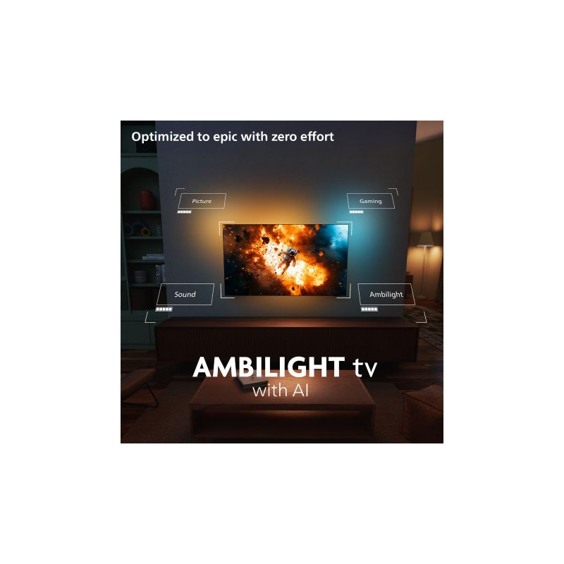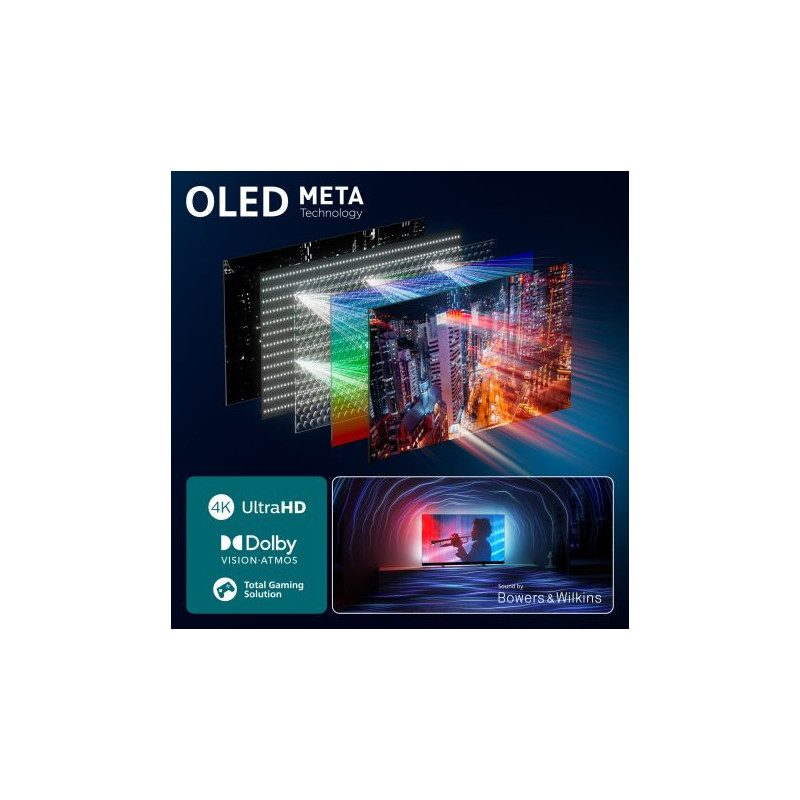 Ambilight, Bowers & Wilkins, Gamebar 2.0, P5 AI Perfect Picture Engine, Perfect Natural Motion, Compatible avec Apple HomeKit, Works With Control4, Works With Matter