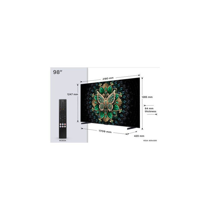 TCL P7K 85P7K. Taille de l'écran: 2,16 m (85"), Résolution de l'écran: 3840 x 2160 pixels, Type HD: 4K Ultra HD, Technologie d'affichage: QLED, ...