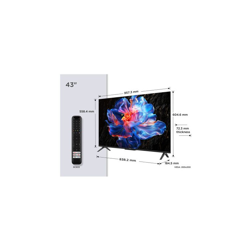TCL C7K 65C7K. Taille de l'écran: 165,1 cm (65"), Résolution de l'écran: 3840 x 2160 pixels, Type HD: 4K Ultra HD, Technologie d'affichage: ...