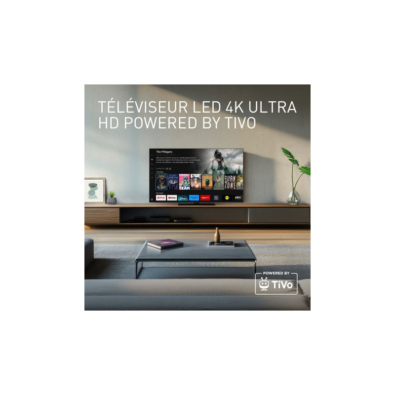 TV LED UHD 4K 139 cm Panasonic TB-55W61AEZ - Ce téléviseur LED 4K offre une qualité d’image impressionnante grâce au 4K Colour Engine, qui restitue des couleurs naturelles et des détails nets - Compatible avec les formats HDR10 et Dolby Vision, il propose une image dynamique et riche en contrastes avec des reflets éclatants - Le traitement en 60Hz associé à une dalle LED haut contraste permet une restitution fluide des mouvements - Le son immersif est assuré par une puissance de 20W et une compatibilité Dolby Atmos et Surround Sound, pour vous plonger au cœur de vos films et séries - Grâce au Game Mode Plus avec tableau de contrôle, les joueurs bénéficient d’une faible latence et d’une meilleure réactivité - Connecté, ce modèle est équipé de la Smart TV TiVo avec recommandations personnalisées, accès rapide aux plateformes de streaming et commande vocale intégrée - Il fonctionne aussi avec Google Home et Alexa, pour une gestion facile à la voix - Côté connectique, on retrouve 3 ports HDMI dont un compatible eARC, le Bluetooth 5.0, deux ports USB et une prise casque - La télécommande fournie avec micro intégré permet un contrôle simple et intuitif.