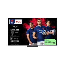 TV LED Tcl 4K QD-Mini 144Hz 75C69K 191 cm avec GOOGLE et système sonore Onkyo x Dolby Atmos 2.1
